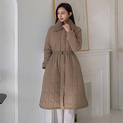 [릴룸]리얼 토끼털 퀄팅 롱 패딩(벨트포함)