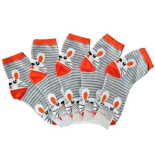 ksr 토끼 줄무늬 여자 중목양말 회색 5켤레 WFJNC79