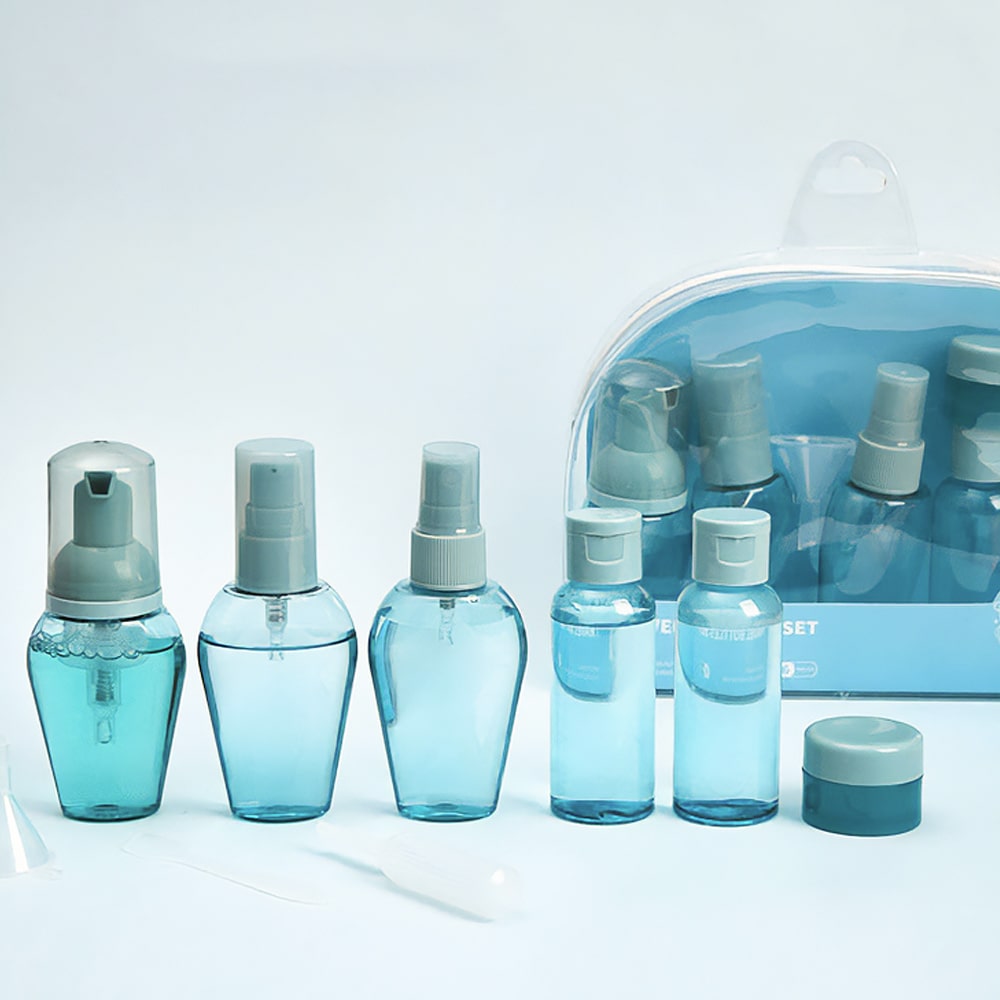 여행용 로션 공병 샴푸 화장품 소분 펌핑 크림 용기 도구 9종세트