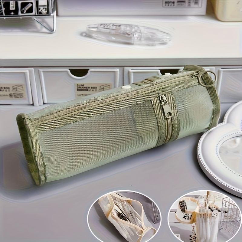 TEMU 스타일리시한 통기성이 좋은 대용량 그리드 펜슬 케이스 - 펜, 마커, 가위 등에 대한 다기능 학교 사무실 용품 정리함, 휴대용 기구 보관함, 펜슬 케이스 가방, 기능성 디자인, 안전한 지퍼 잠금, 모든 계절에 적합