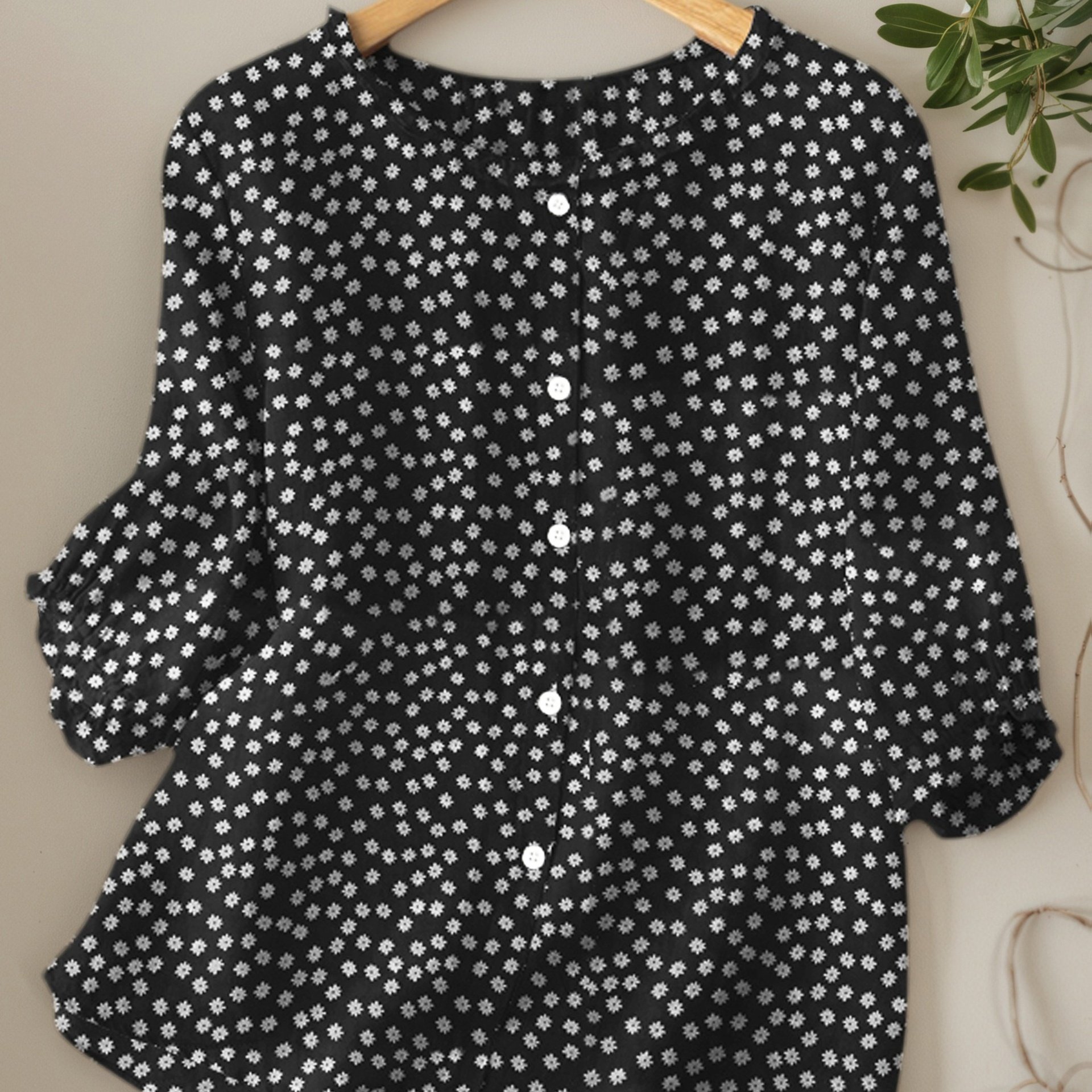 TEMU 여성용 우아한 빈티지 플로럴 셔츠, 7부 소매, 레이스 라운드넥, 싱글 버튼 장식, 젊고 청순한 디자인