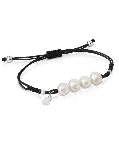 [토스] [TOUS] 실버 펄 블랙 코드 진주 팔찌 213031540