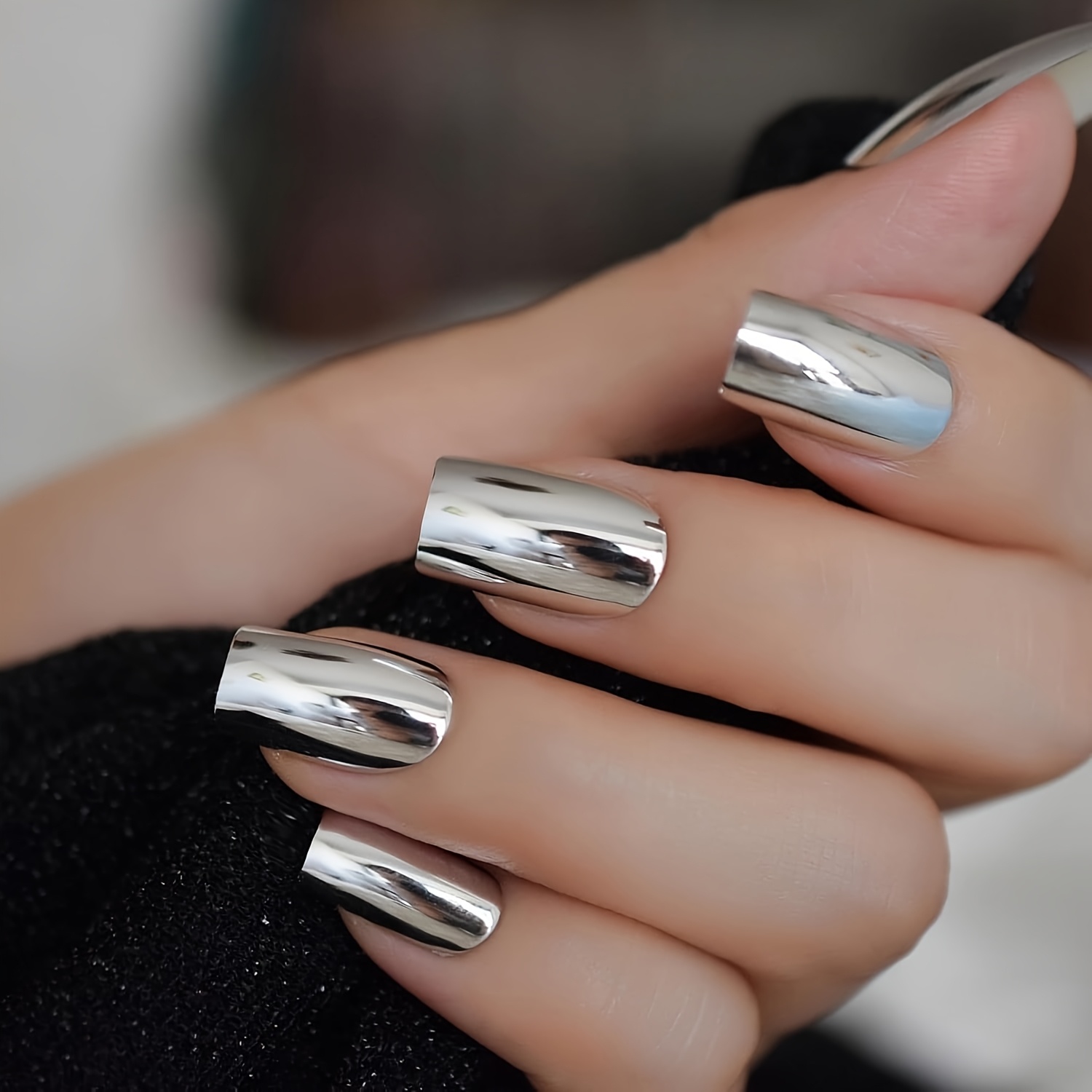 TEMU 쿨네일 반짝이는 실버 메탈릭 롱 펑크 메탈 플레팅 미러 손톱 인조 매니큐어 프레스온 네일 장식