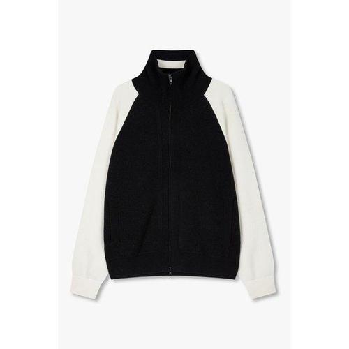 25 FW 스튜디오 톰보이 콘트라스트 하이넥 집업 케이블 니트 가디건 네이비 9104451913