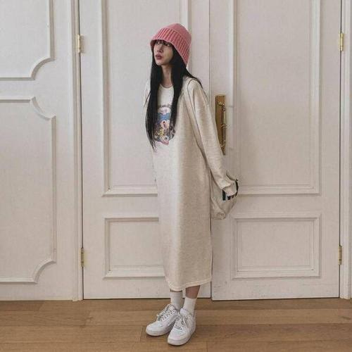 [시크블랙]투크도 톰제리 프린팅 롱 맨투맨 원피스