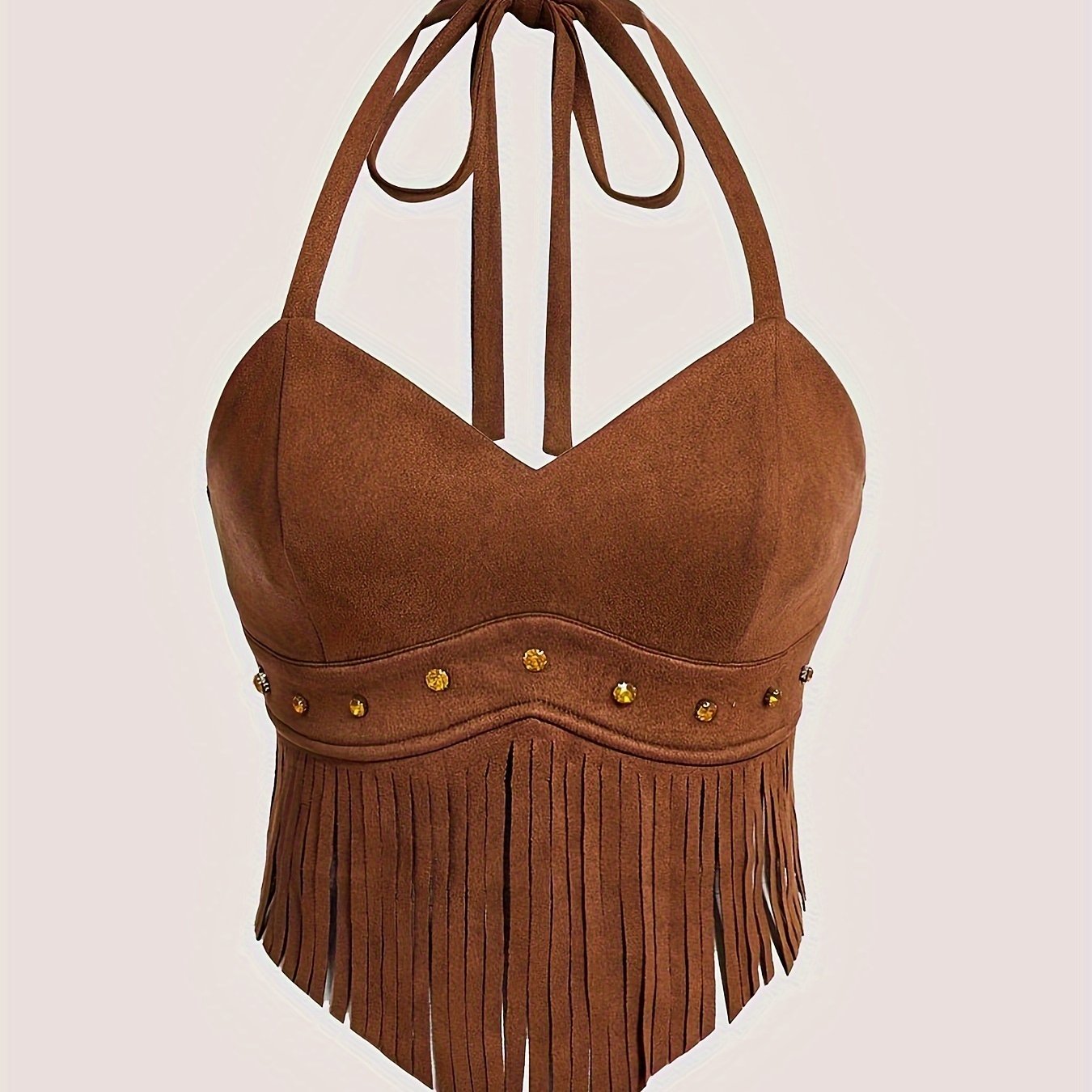 TEMU 여성용 레트로 프린지 캐미솔 탑