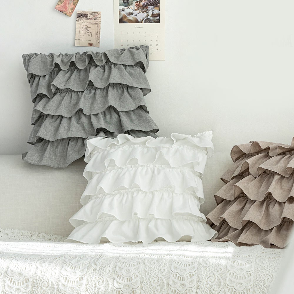 로맨틱 루나 프렌치 캉캉프릴 쿠션 워싱면광목 홈파티