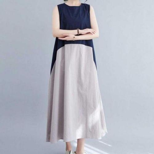 [에이치플러스몰]투톤 모던 캐주얼 민소매 원피스 필수템 A라인 여리여