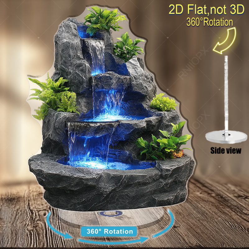 TEMU 2D 플랫, LED 조명이 있는 다층 인공 암석 분수 기능의 2D 플랫 회전 아크릴 장식품 - 아버지날 선물 및 편안한 홈 분위기와 휴식을 위한 아이템