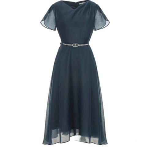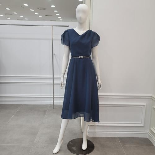 [스타일온미][스타일온미] 엘도아 세련미UP 네이비 튤립 소매 플레어 원피스.