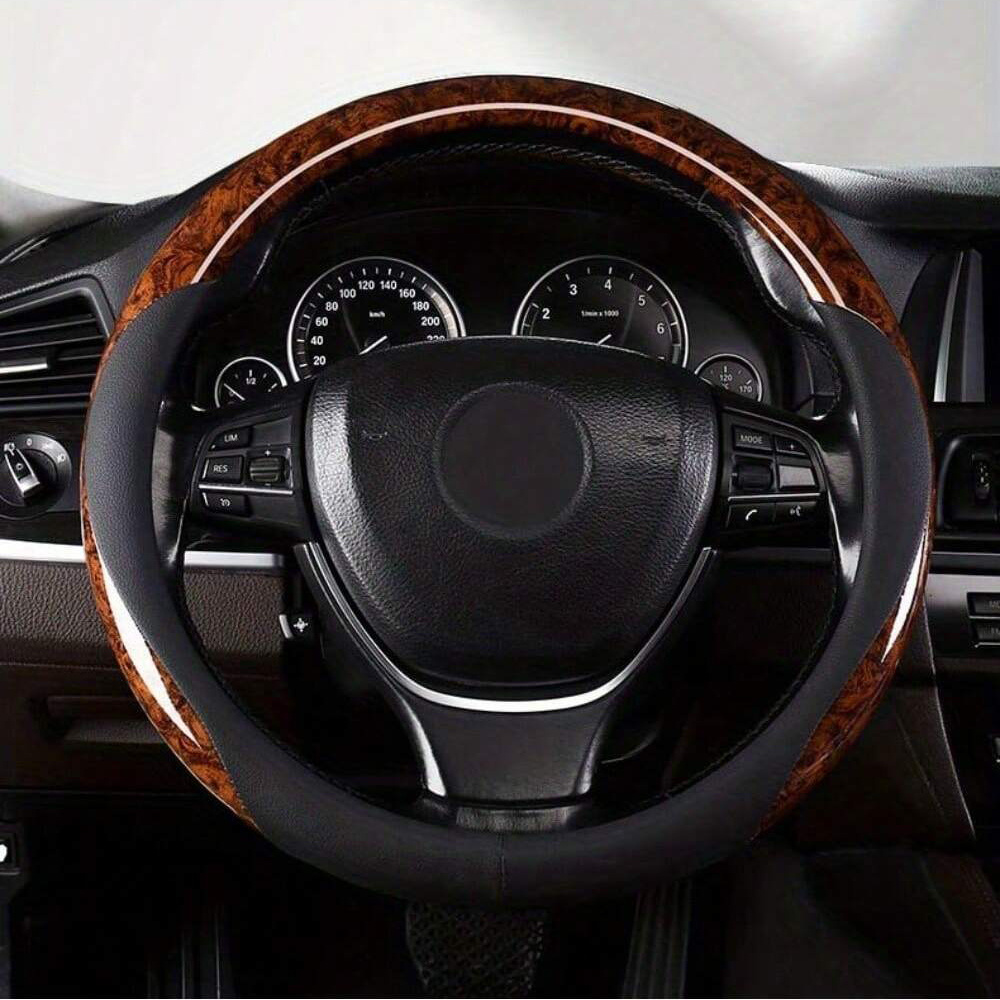TEMU 목재 디자인의 자동차 핸들 커버, 미끄럼 방지 보호, 15인치 범용, 땀 흡수 및 미끄럼 방지, 대부분의 자동차, 트럭, 밴 및 SUV에 적합.