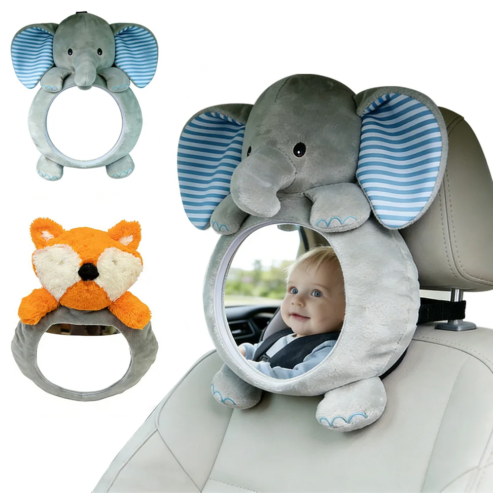 1개입 이지 뷰 베이비 카 미러, 깨지지 않는 넓고 선명한 시야 안전 카시트 만화 인형 거울 (후방 시야 유아용)