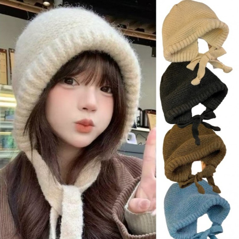 TEMU 비니 도톰 끈 가을 단색 스트랩 니트 _당일배송_ 모자 겨울