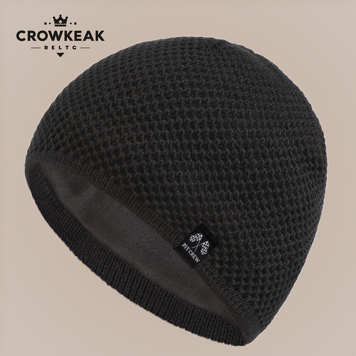 TEMU 한국식 슬라우치 비니 모자 - 케이블 무늬, 겨울용 보온, 아이코닉 로고 패치 (로고 없음), 베이지/블랙/그레이/네이비 - 추운 날씨에 적합한 부드러운 소재, 캐주얼 & 포멀 스타일 다용도. 보온, 겨울용 모자, 추운 날씨에 적합