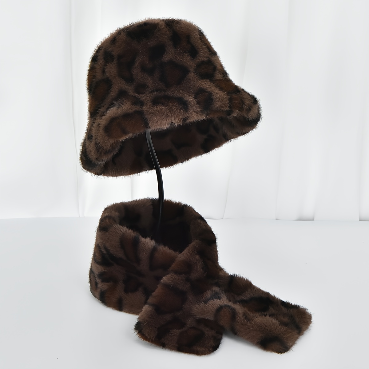 TEMU 여성용 페이크 겨울 모자, 겨울용 아웃도어 따뜻한 모자, 모조 밍크 낚시 모자, 세련된 페이크 프린트 낚시 모자, 우아한 터치, 크리스마스/할로윈에 적합, (모자 + 스카프) 세트, 가을 및 따뜻한 추가용으로 적합|모자