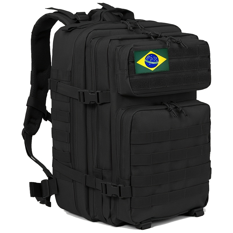 TEMU 남녀공용 45리터 전술 백팩 - 대형 3일 캠핑 및 등산용 럭삭, 다중 수납칸, 패브릭, 블랙, 패딩된 어깨끈, 조절 가능한 백패널, 내구성 있는 아웃도어 기어, 하이킹 장비|등산가방