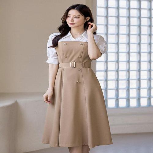[엘리시아]비븐 벨티드 트렌치 배색 원피스