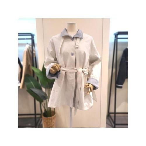 [미스칸트]KOHCQ301IV 배색 하프 트렌치코트