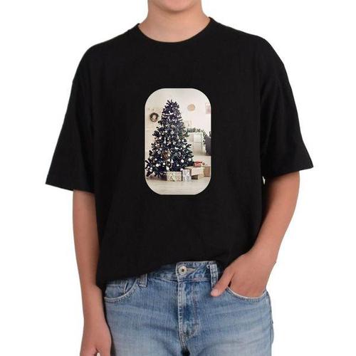 [에이치플러스몰]길단 반팔 USA핏 크리스마스 트리 실내장식 성탄절 산타클로스그림 다양한색상 전사이즈