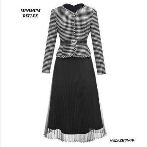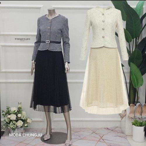 [미니멈]MD 투피스스타일 트위드 자켓 플리츠 샤 원피스 MD MYAAWO1080 Z_CJ