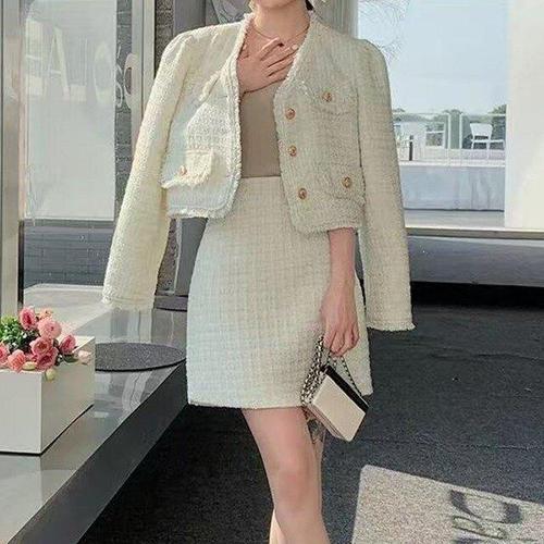 제로투올샵2 / 여성용 트위드 투피스 원피스 세트 봄 가을 화이트 S