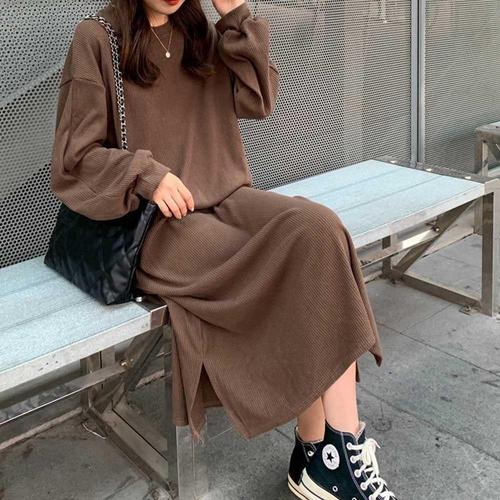 [오너클랜]인기상품 2여성 무지 골지 니트 롱 원피스 LKK004 트임 롱 찰랑 [WFHP9PU_260319]