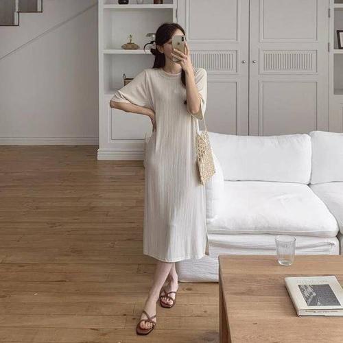[하프클럽/]편하게 입을수있는 트임 포인트 캐주얼 박스 롱원피스