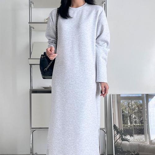 바나나2 라운드넥 슬림핏 옆트임 골지 반팔 롱원피스 3color