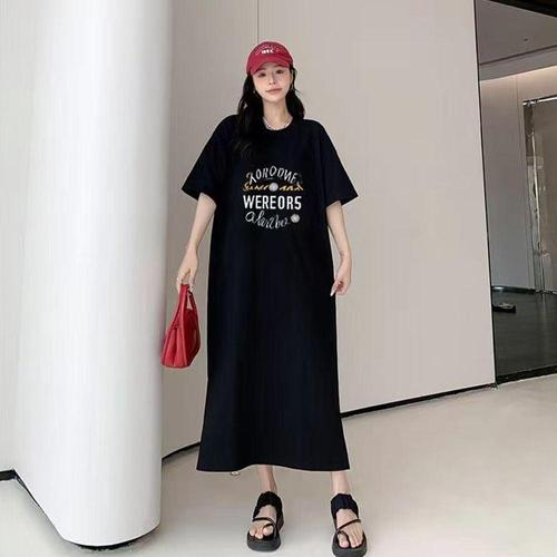 여성 트렌디 영문 레터링 밑단 트임 오버핏 빅 원피스 WFIZLG2