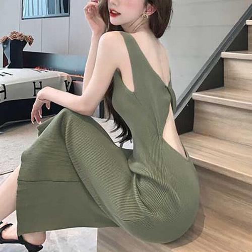 [굿쇼핑몰_의류]페미닌 백리스 트임 골지 민소매 니트 롱 원피스