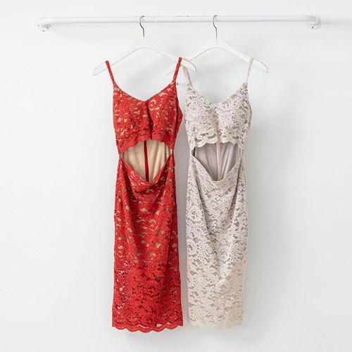 [옷자락]여성 시스루 레이스 트임 슬림핏 미디 원피스