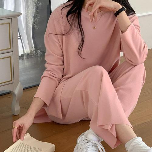 [유야]여성 긴팔 트임 롱 티셔츠 밴딩 바지 세트 -FPST0473- 봄 가을