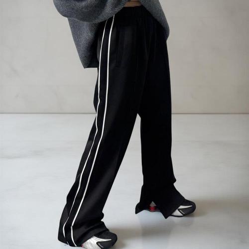 [다잇템]여성 검정 빅사이즈 테이핑 일자핏 트임 팬츠