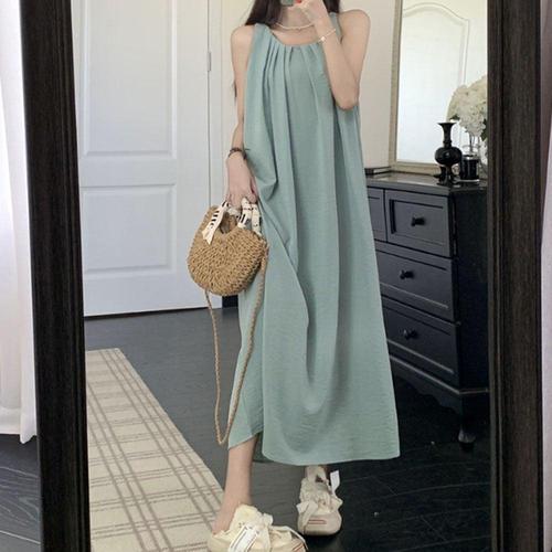 블랙 민소매 여성 백트임 시원한 롱 원피스 드레스 WFIXA9C