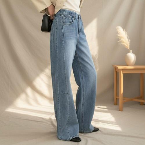 [옷자락] 여성 롱 하이웨이스트 뒷밴딩 밑단트임 세미와이드 청바지