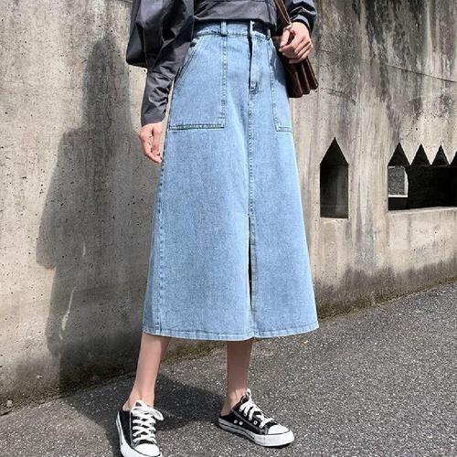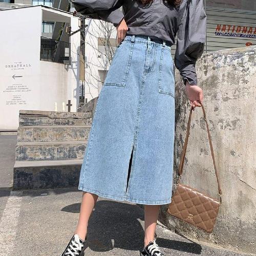 [옷자락]여성 사계절 활용 청바지 앞트임 치마