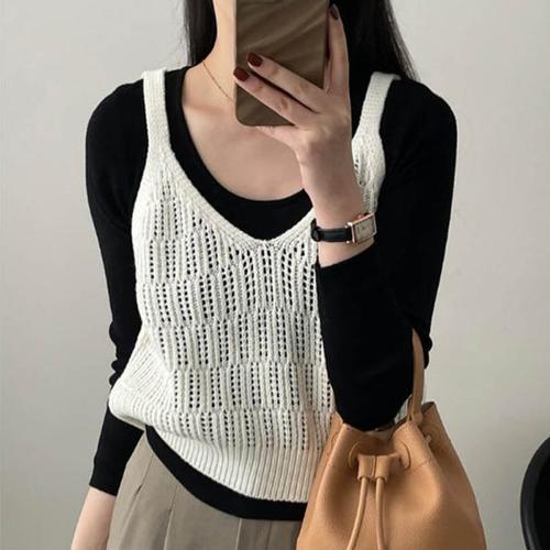 [리빌모아]여자 뷔스티에 니트 뜨개조끼 LDW-VES-SSIS449-블랙