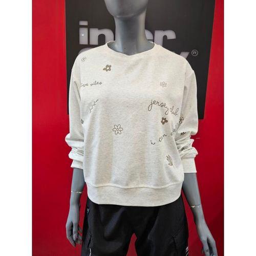 [옷자락] 여성 엠보 로고 오버핏 세미크롭 맨투맨