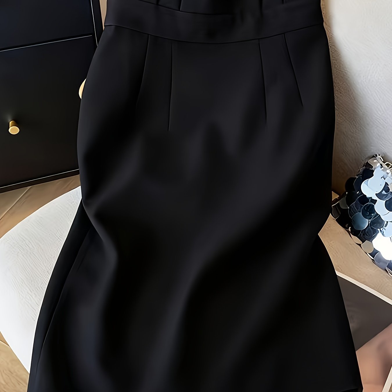 TEMU 허리라인과 스커트 분할이 있는 섹시하고 아름다운 타이트 스커트 | 봄/여름 신상 디자인, 크루넥, 비대칭 디테일, 바디콘 스타일, 단색