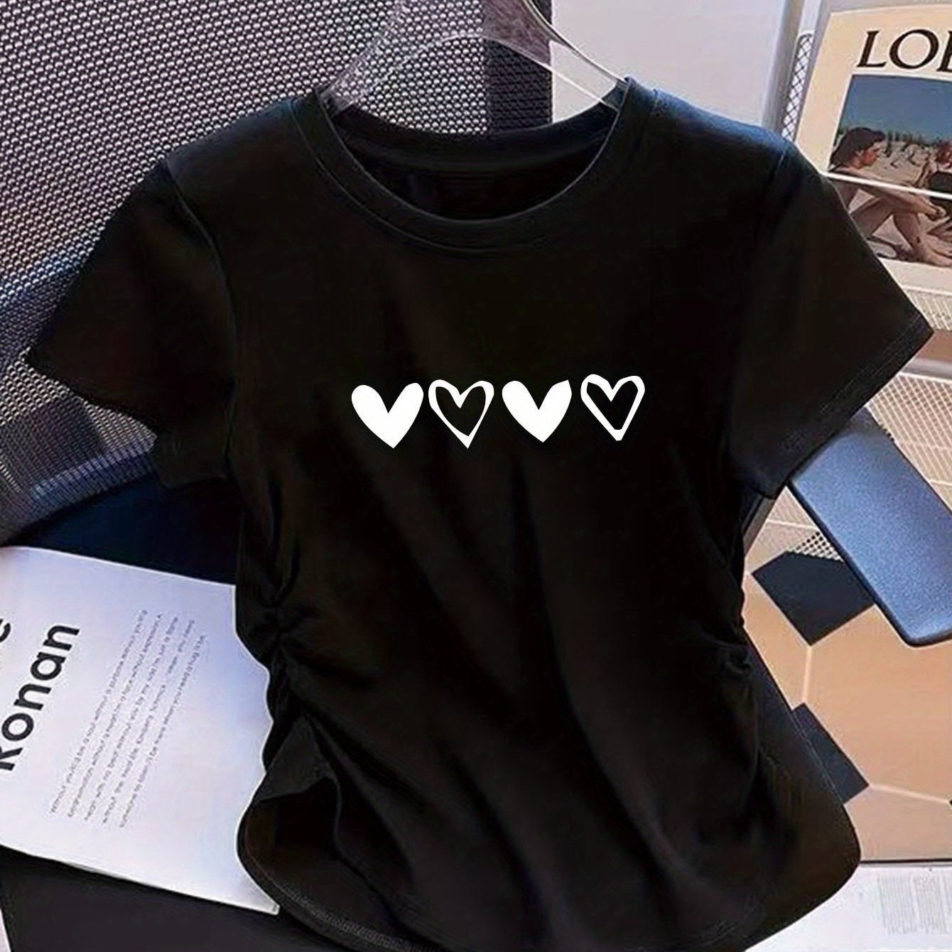 TEMU 여성용 탄성 티셔츠 | 캐주얼 모던 패션, 크루넥, 레귤러 핏, 반팔, 중간 정도 신축성 있는 원단