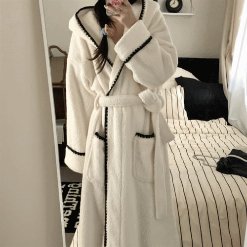 또띠아 스티치 삥줄 극세사 수면 잠옷 롱 로브 가운 (1color)