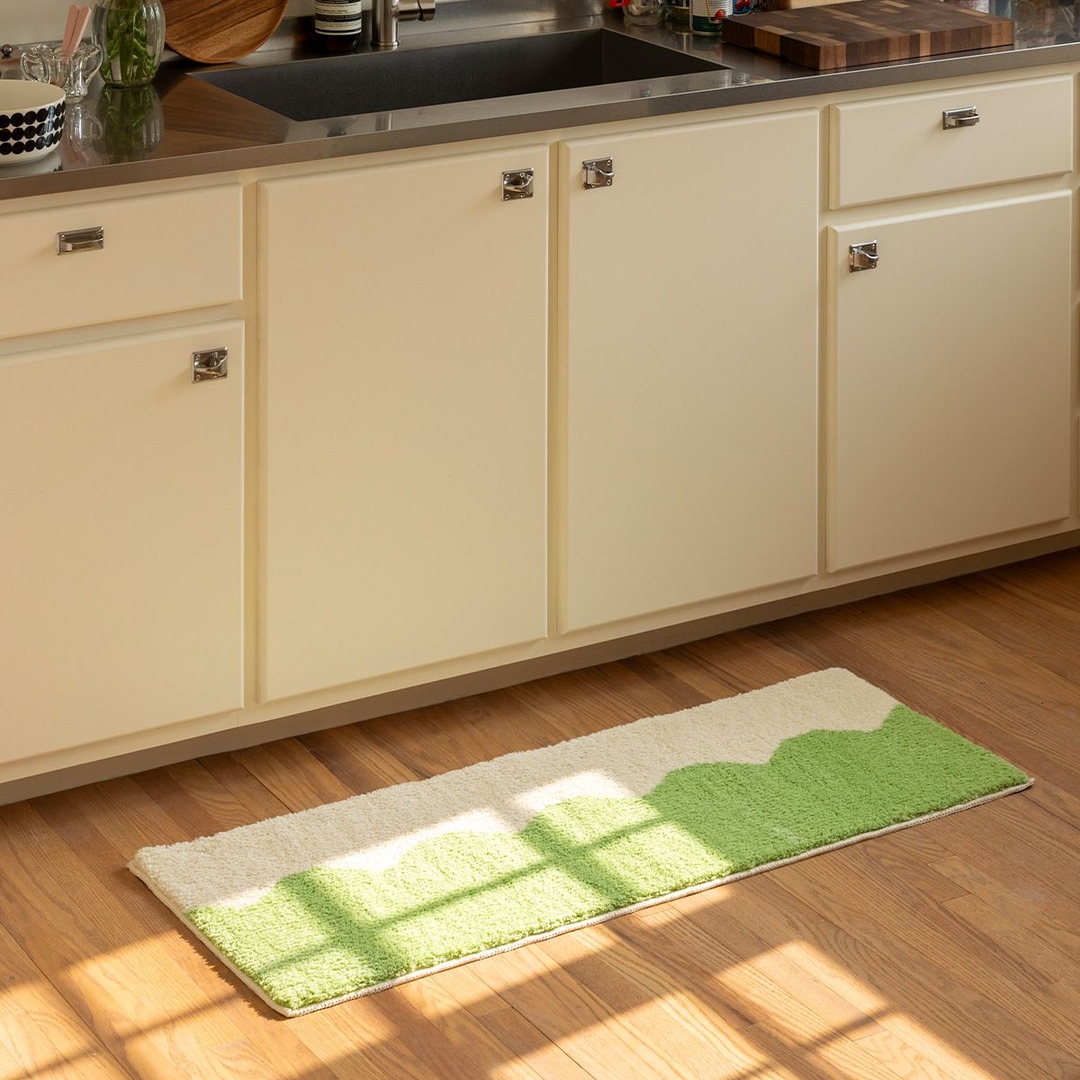 2P 플로우그린 와이드 자카드 러그 발매트 욕실주방논슬립120x45