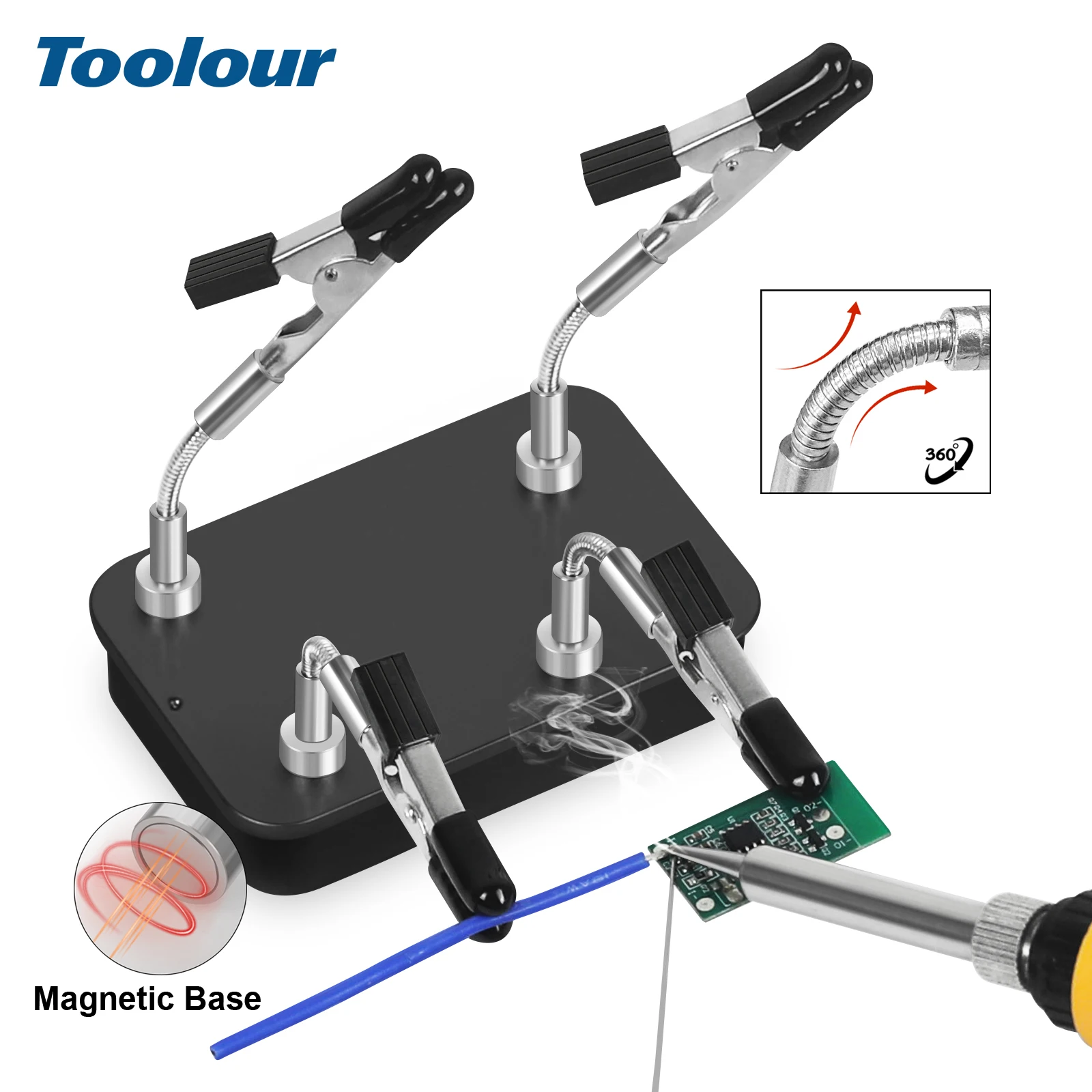 툴러 마그네틱 헬핑 핸즈 납땜 도구 PCB 홀더 (2/4개의 유연한 클립 및 스틸 박스 포함, 납땜, 모델 페인팅용)