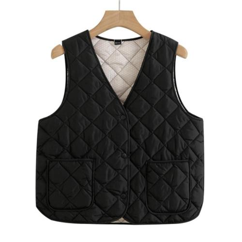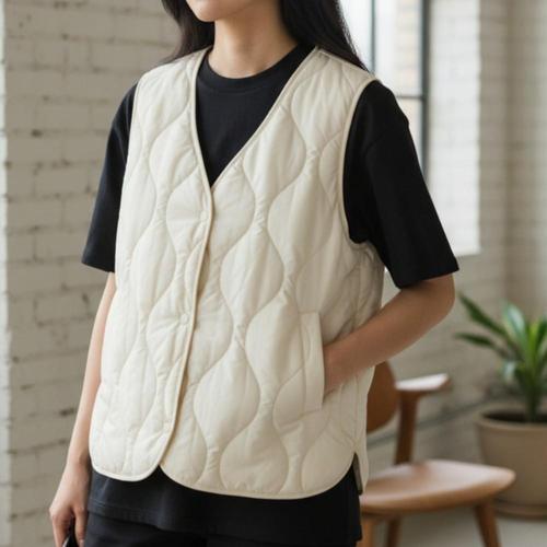 여자 가을 물결 퀼팅 패딩 라운드 경량 브이넥 조끼 WFJRAUS