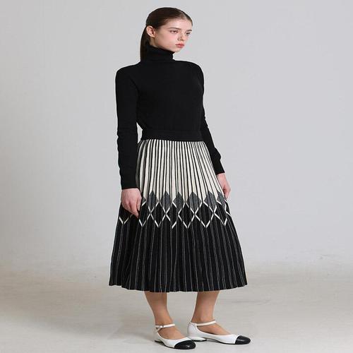 [리스트][패플단독][오조크(OZOC)] 배색 다이아 플리츠 니트 스커트 (택가격 99000원)