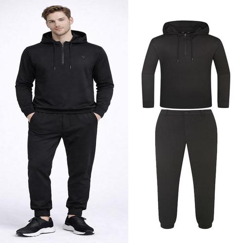 [데니스골프][DENNIS][패플단독] 남성 스윙모션 후드티+조거팬츠 블랙 2종세트
