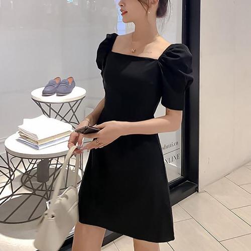 [오너클랜]인기상품 여자 스퀘어넥 퍼프 오프숄더 핀턱 블랙 미니원피스 [WC6EDD1_250916]