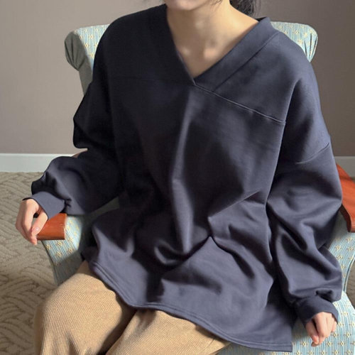 옷자락 / 여자 겨울 기모티셔츠 브이넥 펜던트 퍼프 맨투맨