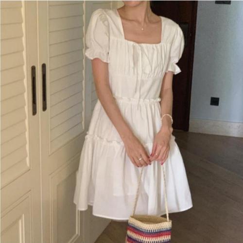 [미라클세븐]여성용 사랑스러운 여름 미니 원피스 퍼프 소매 캉캉 스타일