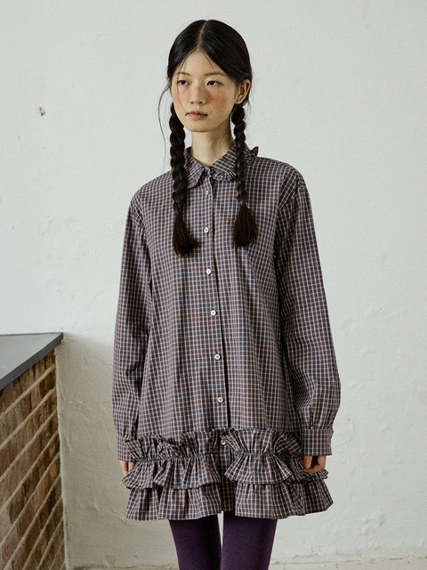 [호쿠스포쿠스] 플럼 체크 프릴 셔츠 원피스_퍼플